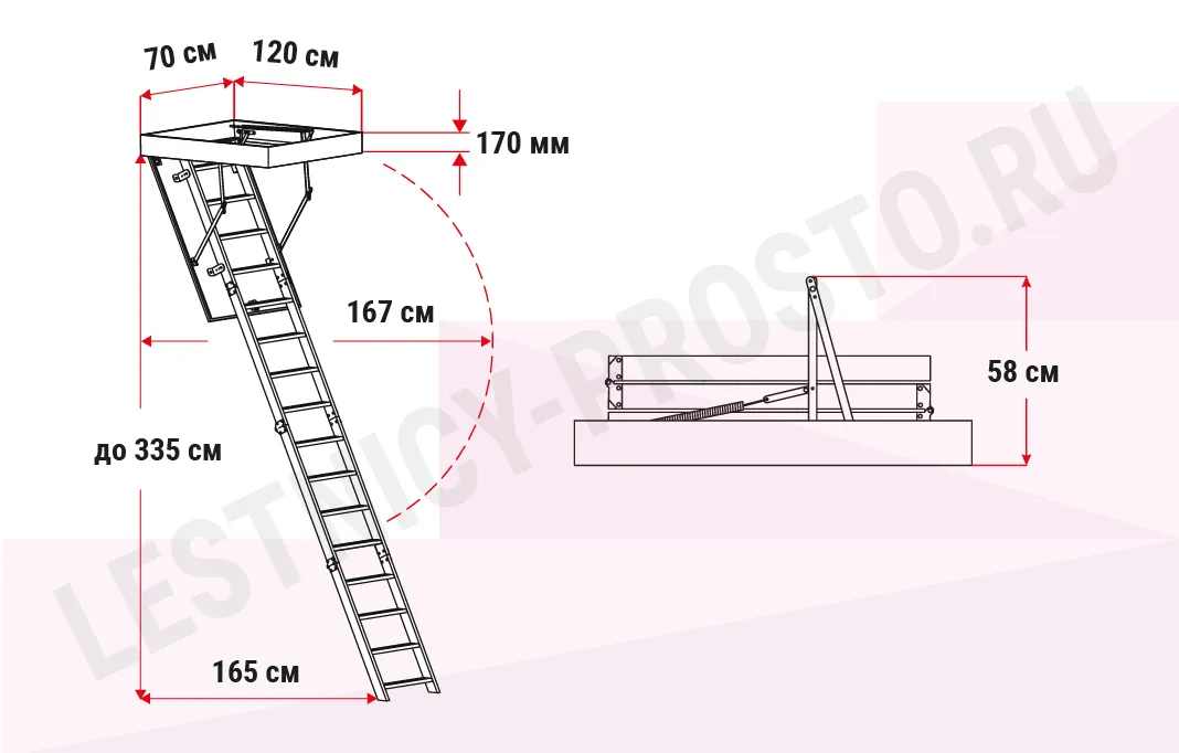 Чердачная лестница с люком OMAN POLAR LONG 70х120 см, h-330 см