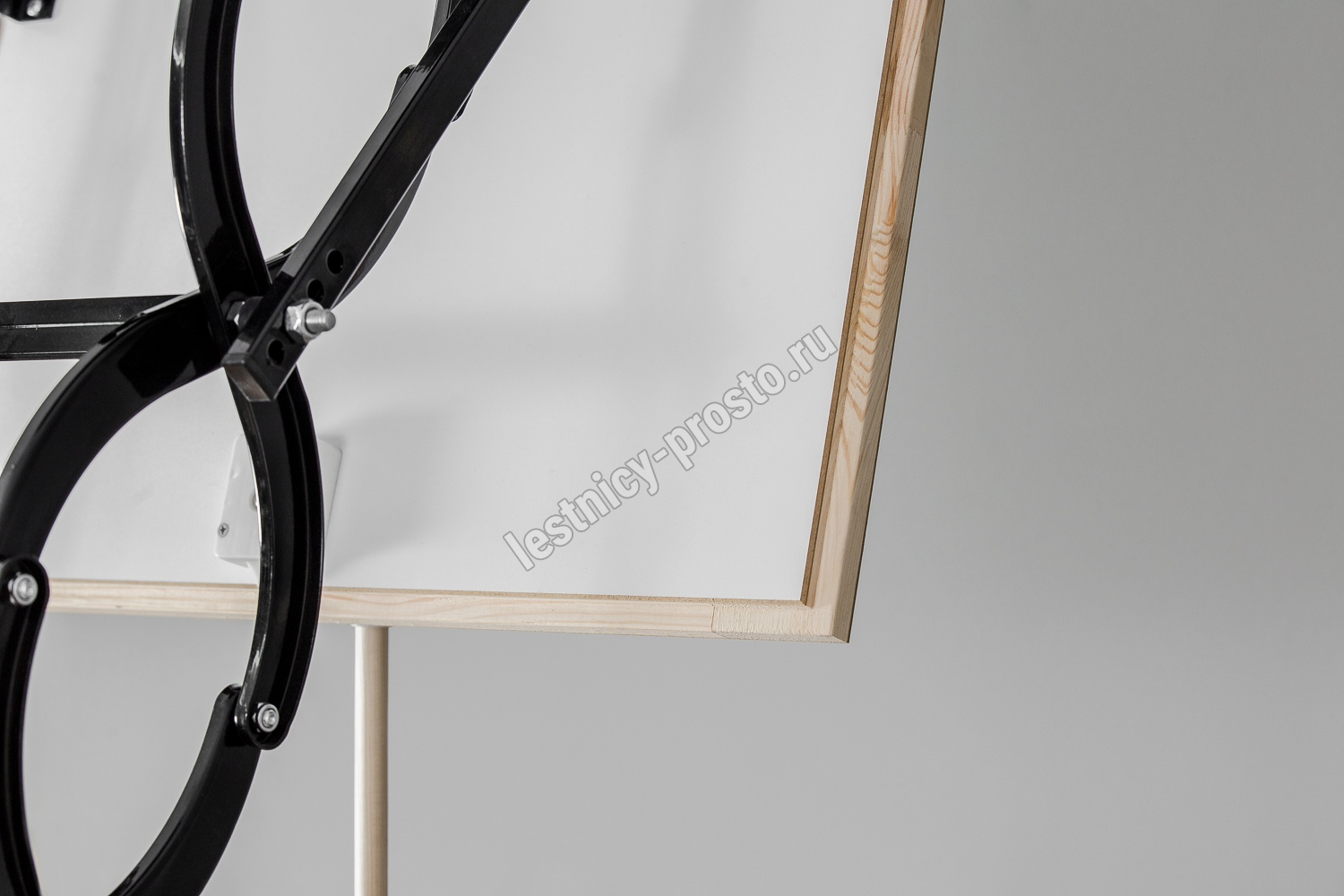 Все элементы лестницы выполнены из экологически чистых материалов и обработаны веществами, не содержащими тяжелых металлов. На ступенях антискользящие насечки. Короб лестницы изготовлен из металла. Термоизоляционная крышка типа "сэндвич" утеплена пенопластом, облицована с двух сторон ДСП белого цвета. Короб люка с уплотнителем. В комплекте деревянный стержень для открывания лестницы.