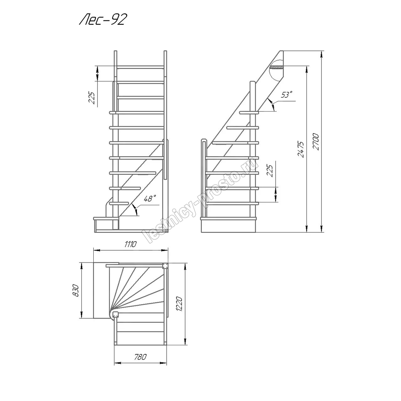 Деревянная межэтажная лестница ЛЕС-92 у, Лиственница