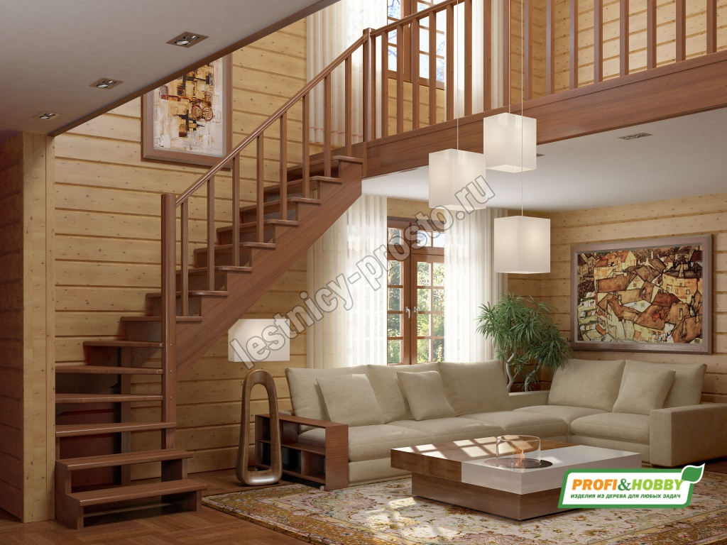 Лестница из сосны К-001М/2 под покраску с подступёнками |