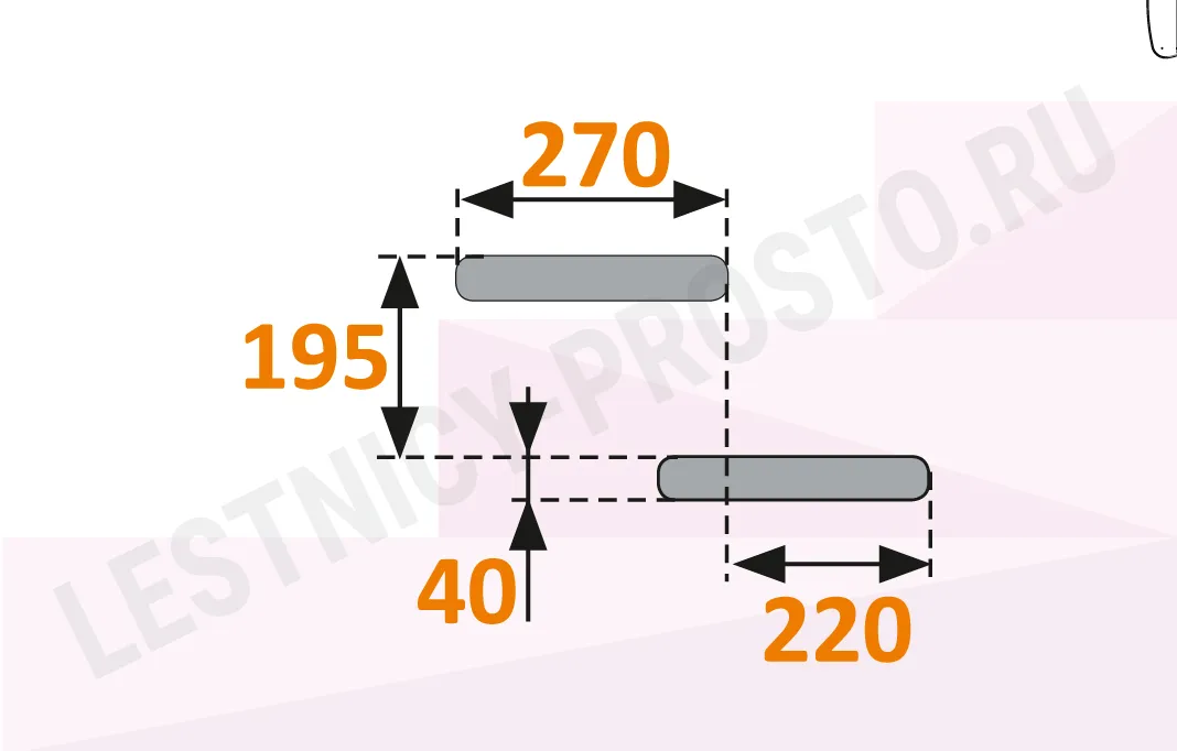 Глубина ступени 270 мм