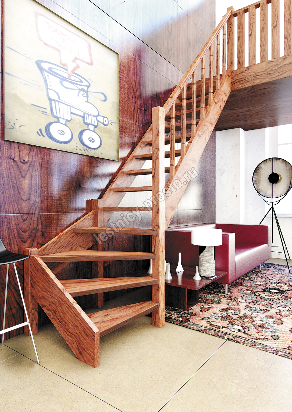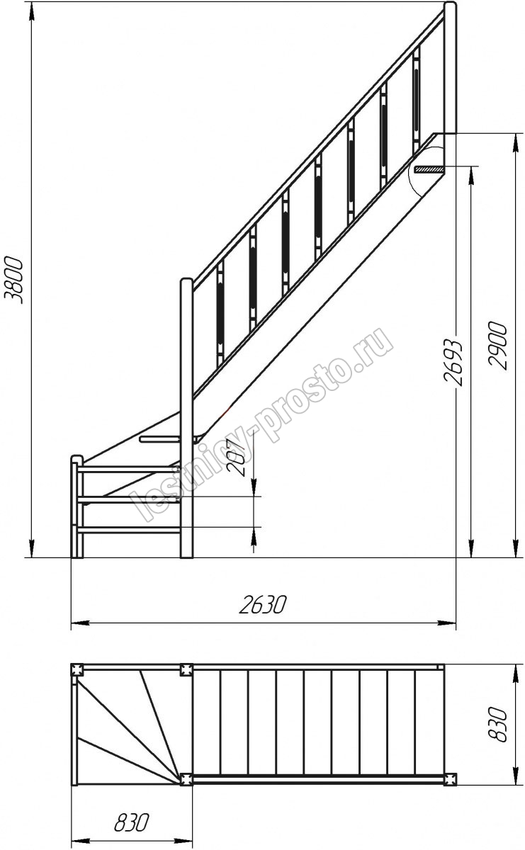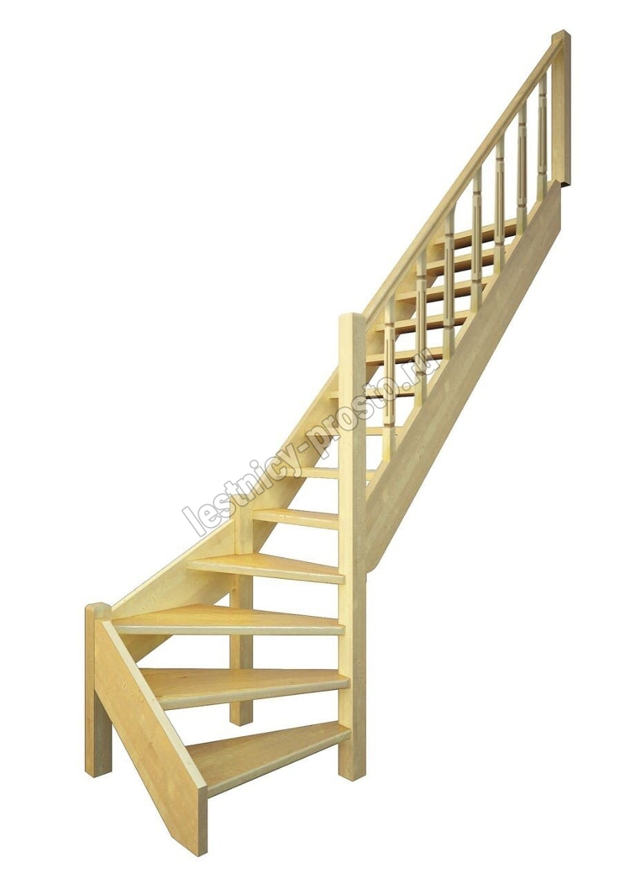Базовый комплект включает в себя деревянные элементы лестницы и ограждения без какого-либо покрытия.