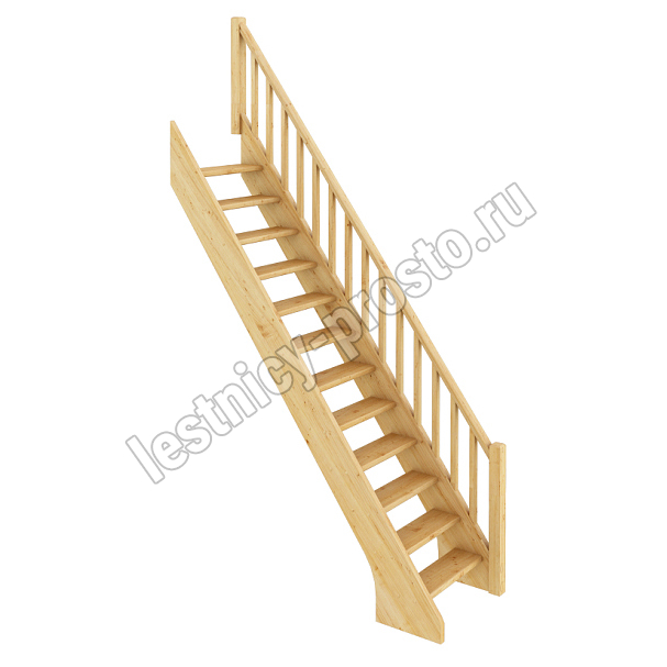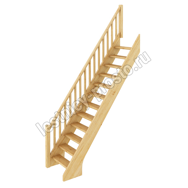 Базовый комплект включает в себя деревянные элементы лестницы и ограждения без какого-либо покрытия.