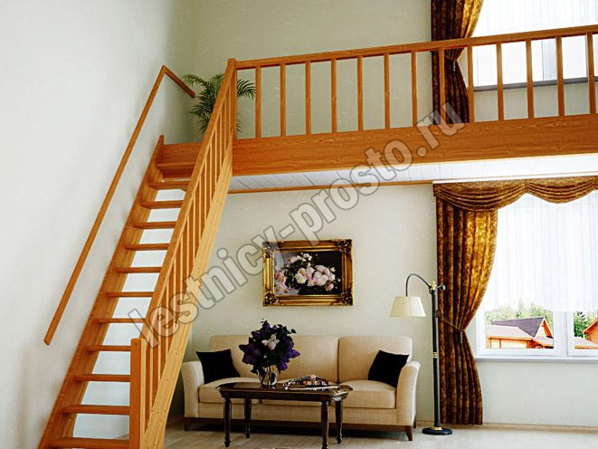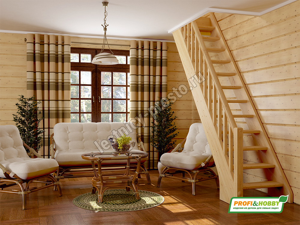 Ступени и поручень лестницы изготовлены из бука, остальные элементы из сосны.