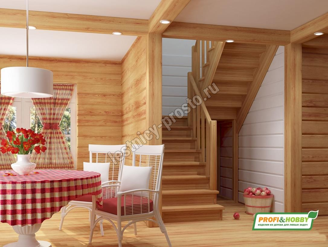 Лестница из сосны К-004М/1 с подступёнками под покраску