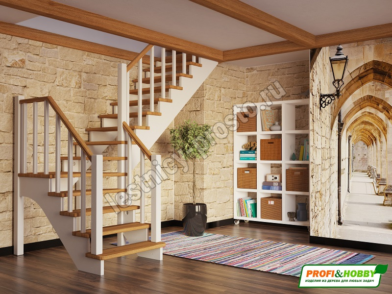 Базовый комплект включает в себя деревянные элементы лестницы и ограждения без какого-либо покрытия.