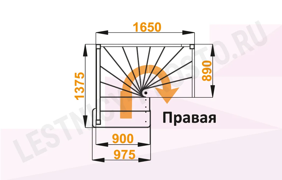 Схема лестницы ЛС-05М с поворотом направо
