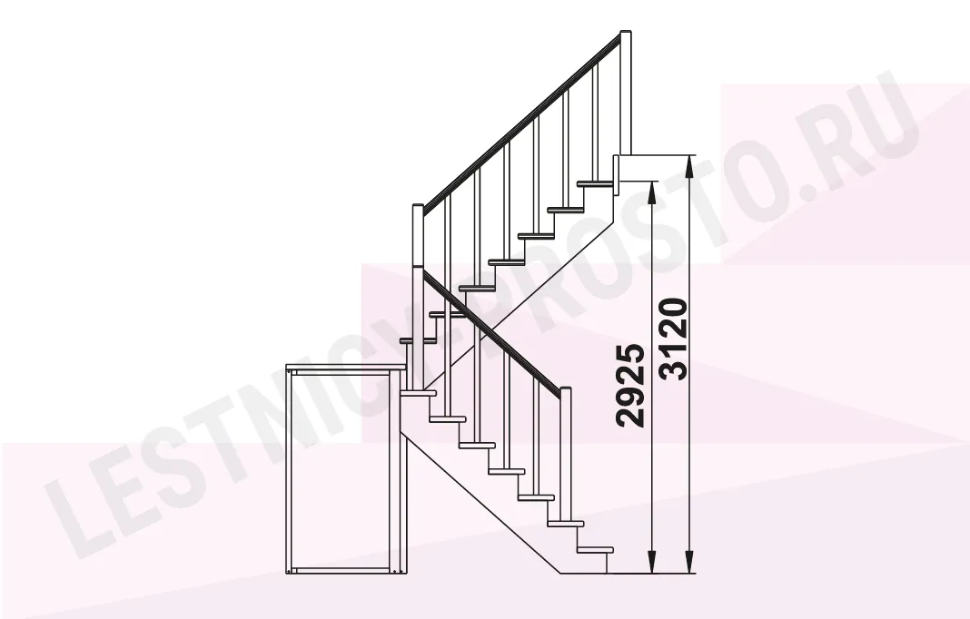 Сочетание оптимального угла подъема, комфортного широкого марша и глубокой ступени делают лестницу одной из самых удобных.
