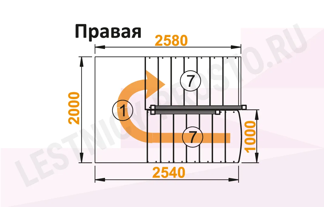 Базовый комплект включает в себя элементы лестницы с подступёнками и ограждения без какого-либо покрытия.
