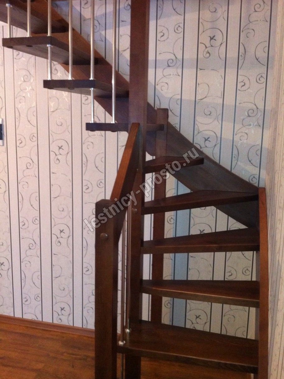 возможна комбинированная лестница: из сосны (ступени бук, ясень, дуб);