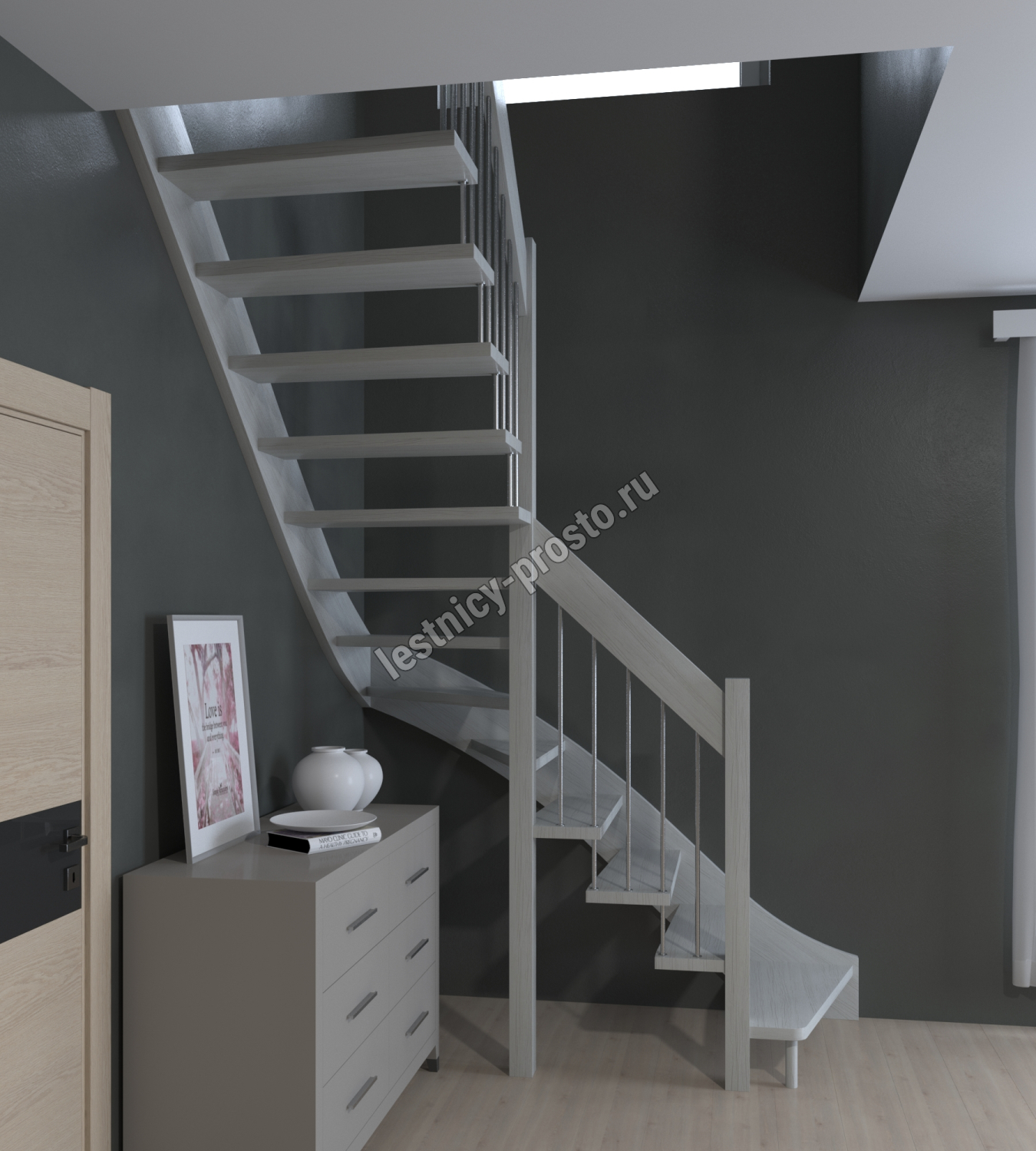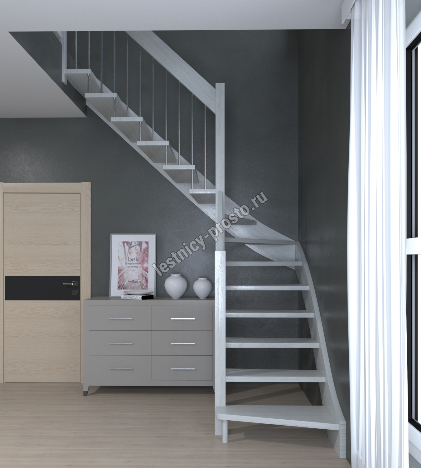Лестница Prosto Console г-образная забежная сосна, h300 см