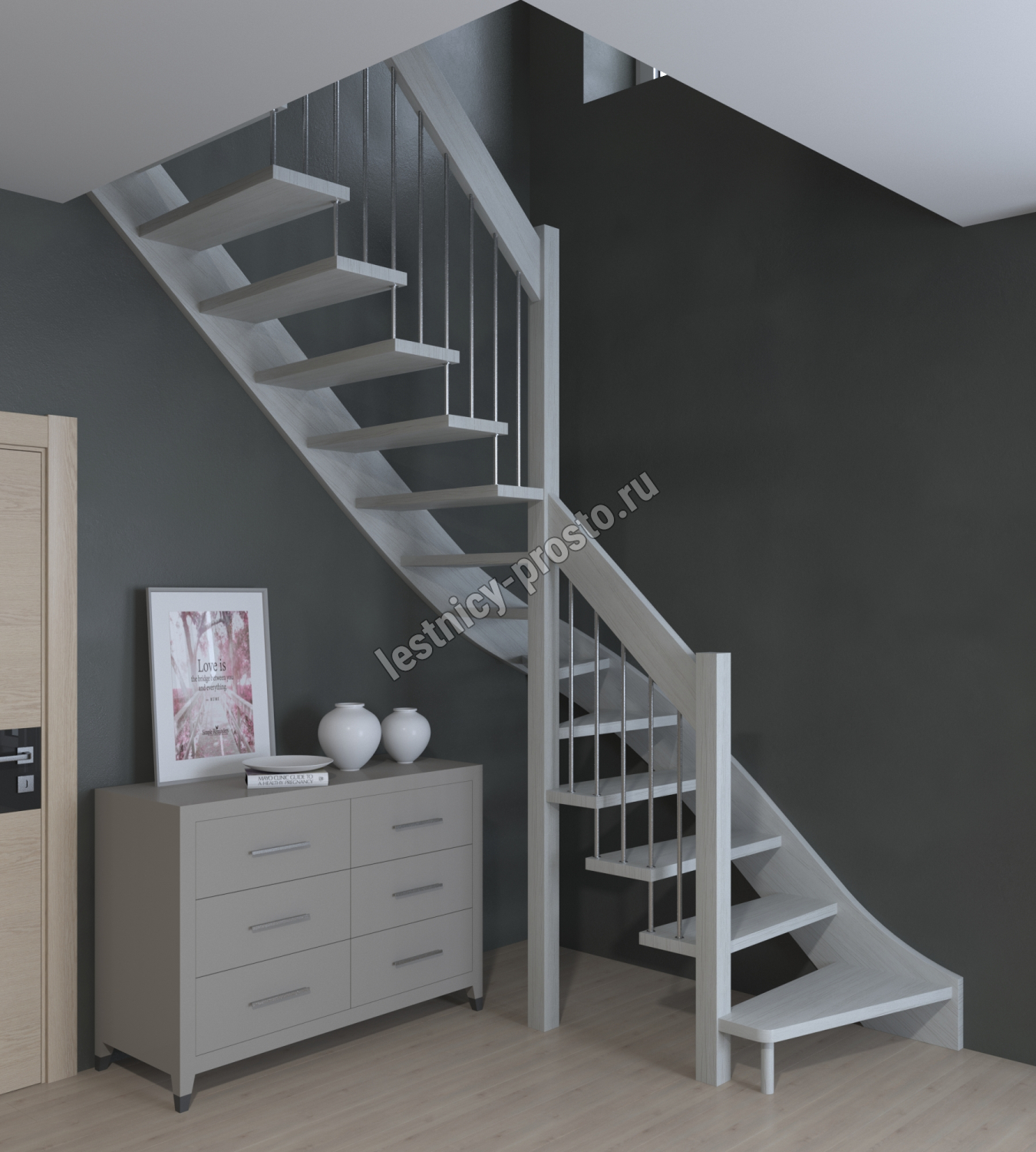 возможна комбинированная лестница: из сосны (ступени бук, ясень, дуб);