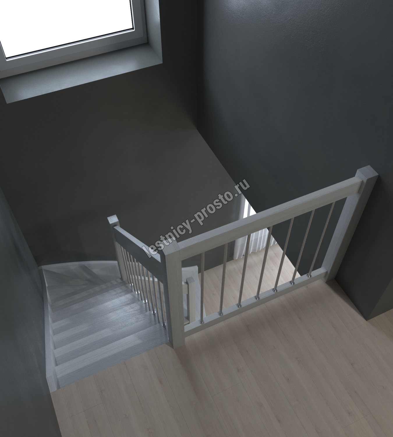 Вид лестницы по реализации поворота: с поворотом на 90° через площадку, с поворотом на 90° через 4 забежные ступени;