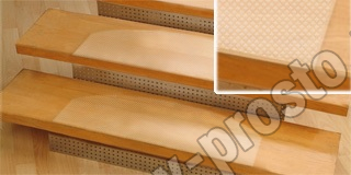 Защитные эластичные накладки на ступени лестницы предотвращают изнашивание, оберегают от случайных механических повреждений и служат безопасности, обеспечивая нескользящую поверхность. Нижняя поверхность накладки прилипает к чистой поверхности ступени лестницы и фиксируется без каких-либо дополнительных склеивающих материалов. Верхняя поверхность рифленая