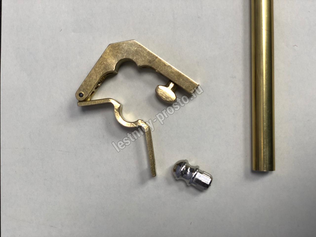 Ковродержатель комплектуется двумя держателями из латуни цвета золото, а также цельным прутком из латуни длиной от 201 до 250 см. Конструкция является сборно-разборной не требующей демонтажа креплений, что делает ее долговечной и очень удобной для чистки ковров и ковровых покрытий.