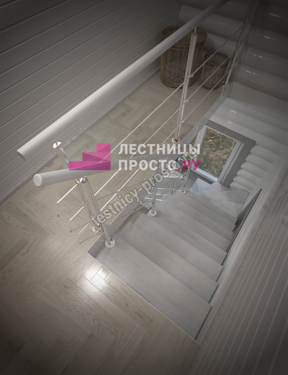 Поворот на 90° реализован посредством поворотных ступеней, высота поворота определяется параметрами вашего помещения и размерами проёма.