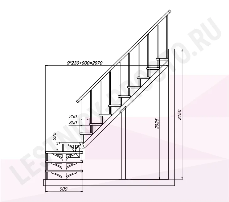 Лестница PROSTO MONO Г-образная h315 см, ступени бук