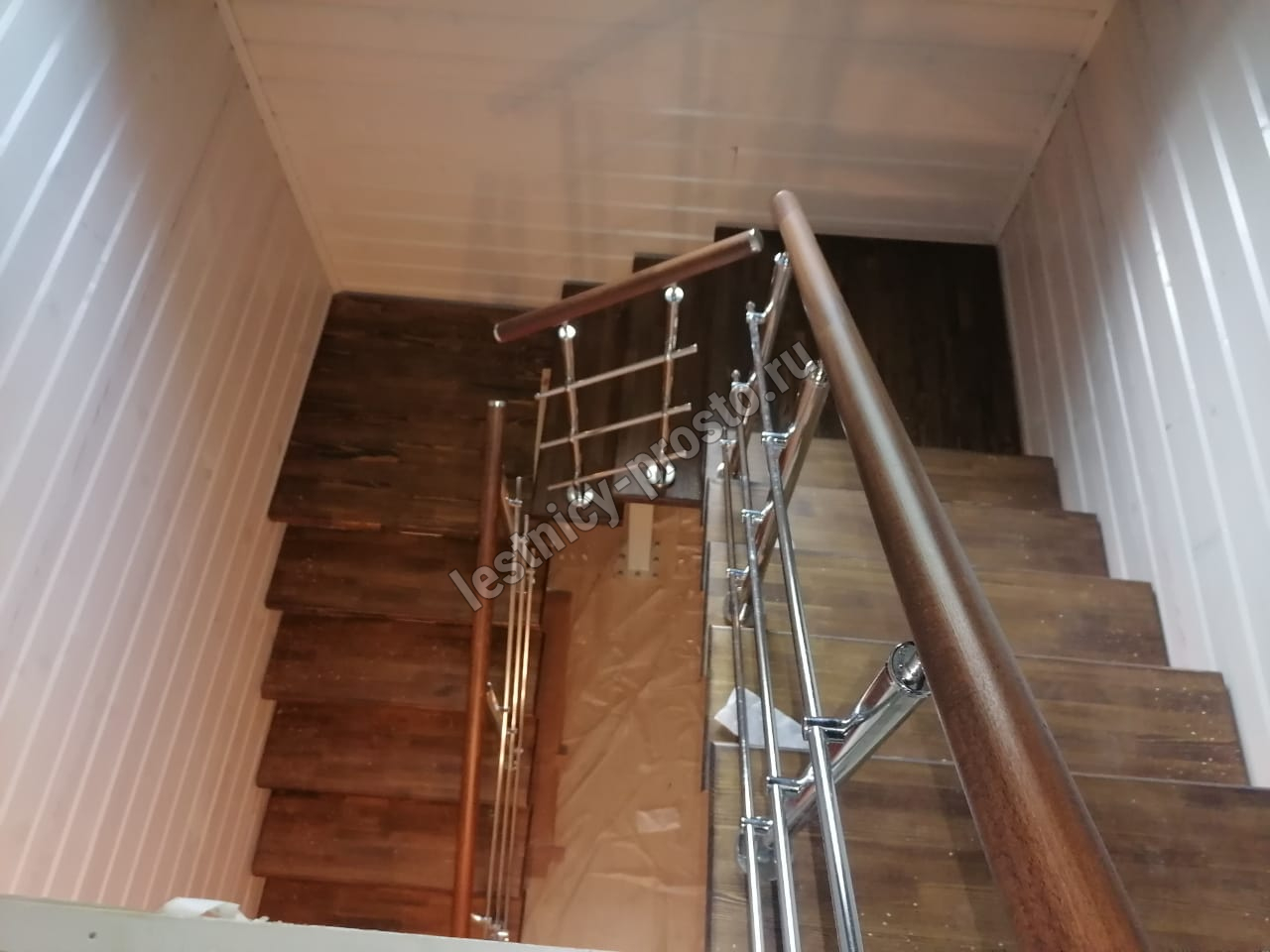 Лестница PROSTO MONO STEP CLASSIC п-образная забежная, ступени из берёзы, с огражадением