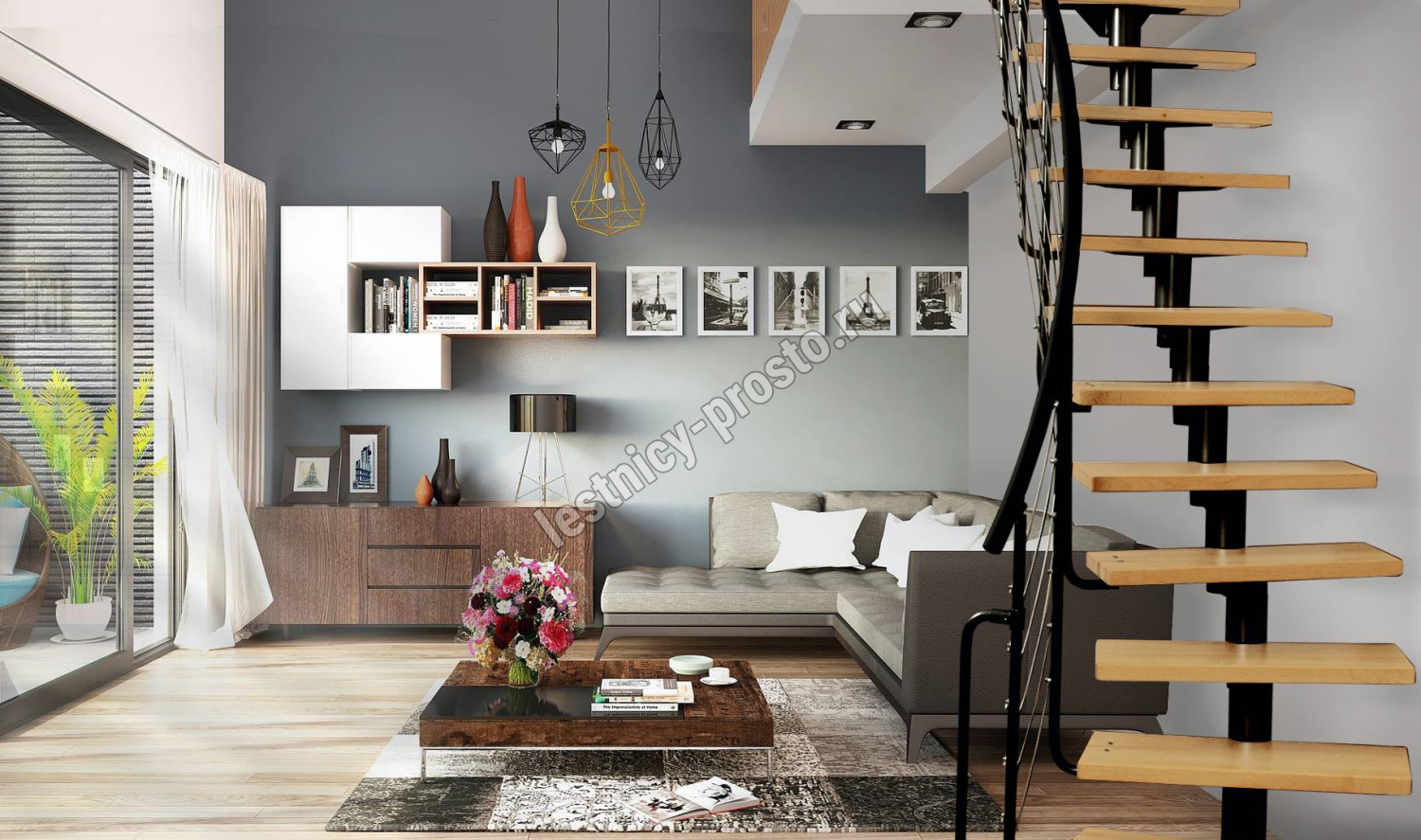 Лестница на стальном модульном каркасе. Высота лестницы регулируется при сборке засчет регулировки высоты шага. Ступени покрыты защитным лаком. Ограждение из стали с пластиковым поручнем. В комплект входят перила с вертикальными стойками и горизонтальными перегородками. Изделие поставляется с шурупами (кроме потолочных и напольных анкеров), инструкциями по монтажу и эксплуатации и гарантией. Внимание! Для этой лестницы необходимо крепление к стене.