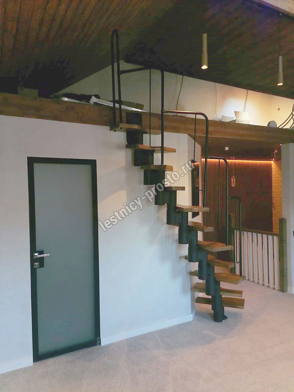 Лестница Prosto Urban Black гусиный шаг 700 мм, h180-264 см (10 ступеней), ясень