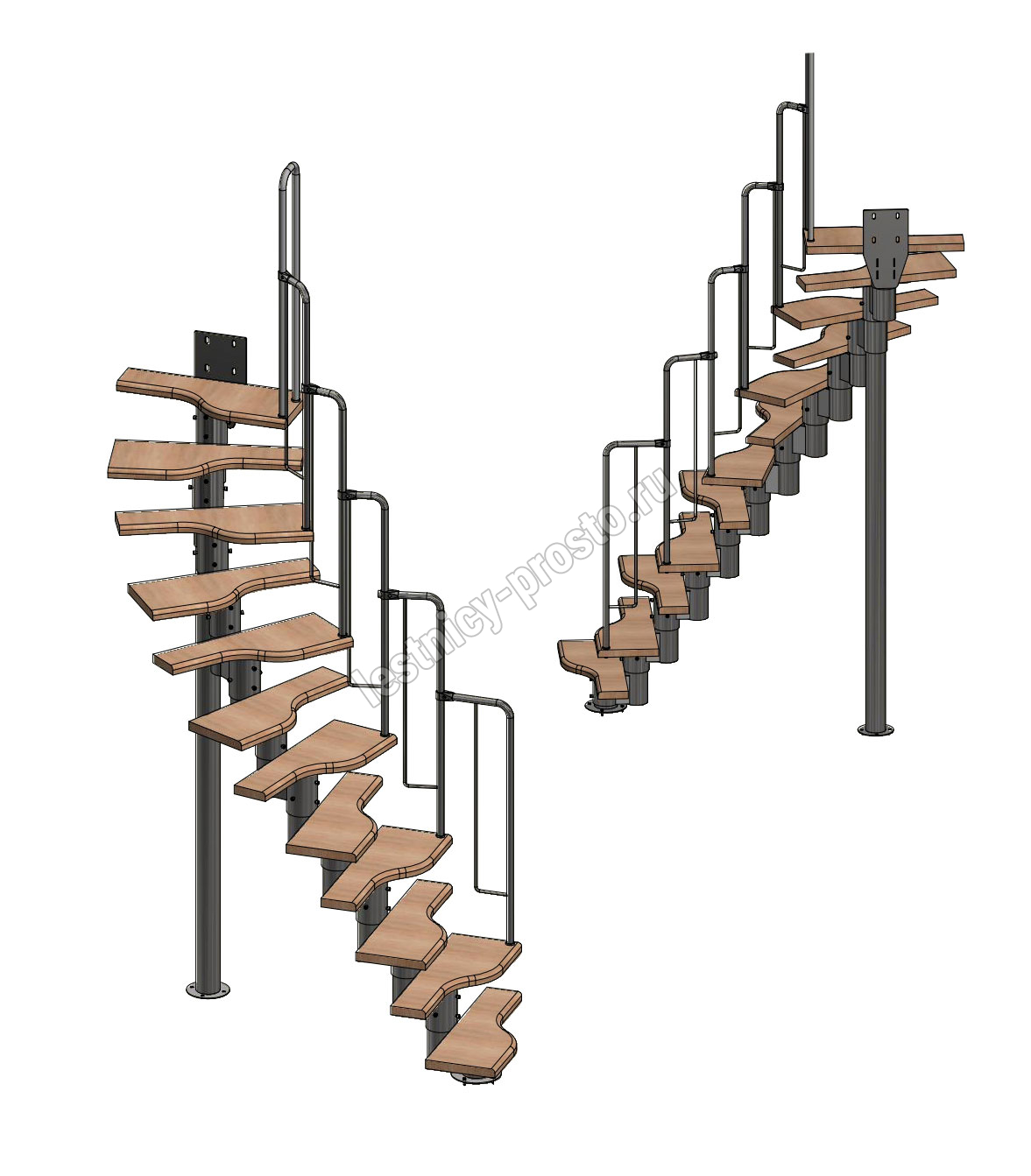 Лестница Prosto Urban Black гусиный шаг 700 мм, h216-312 см (12 ступеней), берёза мультиплекс