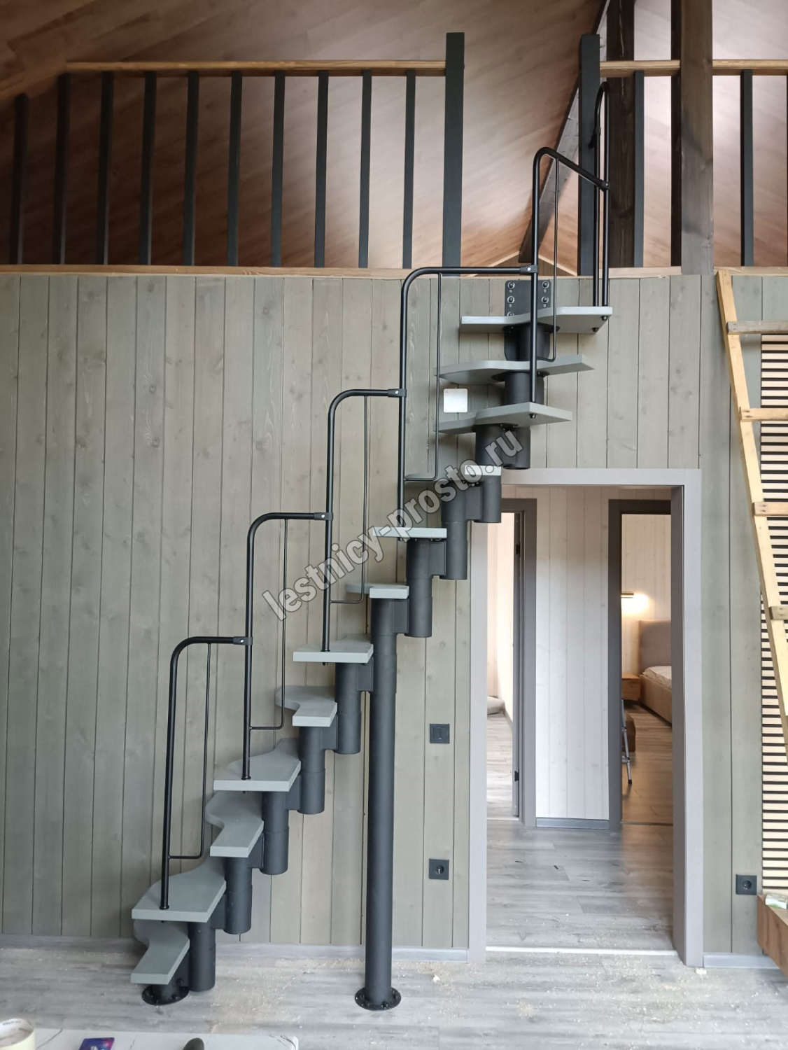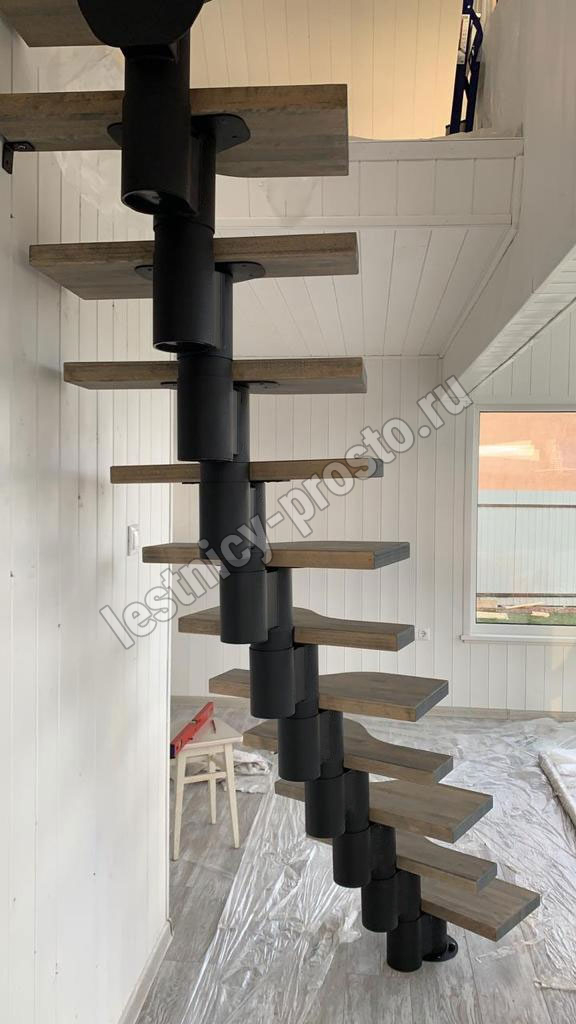 Лестница Prosto Urban Black гусиный шаг 700 мм, h234-336 см (13 ступеней), берёза мультиплекс