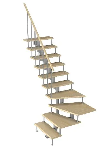 соответствует картинке, но вы не ограничены в его выборе. Лестницу можно приобрести и без ограждения, и с любым другим. Устанавливать на такую лестницу можно почти всё, начиная от классических деревянных балясин и заканчивая эксклюзивными коваными изделиями.