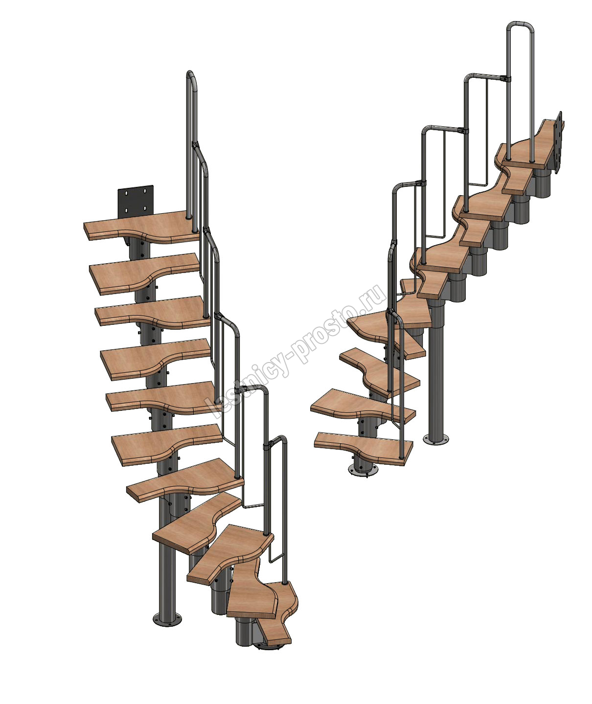 Лестница Prosto Urban Black гусиный шаг 600 мм, h198-288 см (11 ступеней), дуб