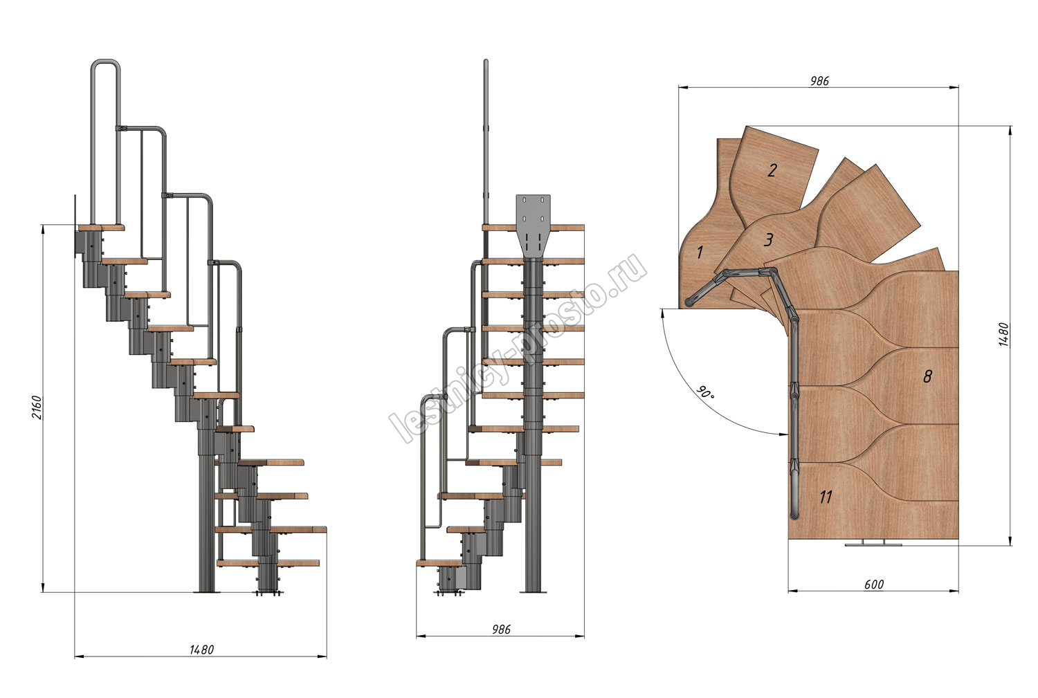 Высота лестницы 1980 - 2880 (11 ступеней) мм