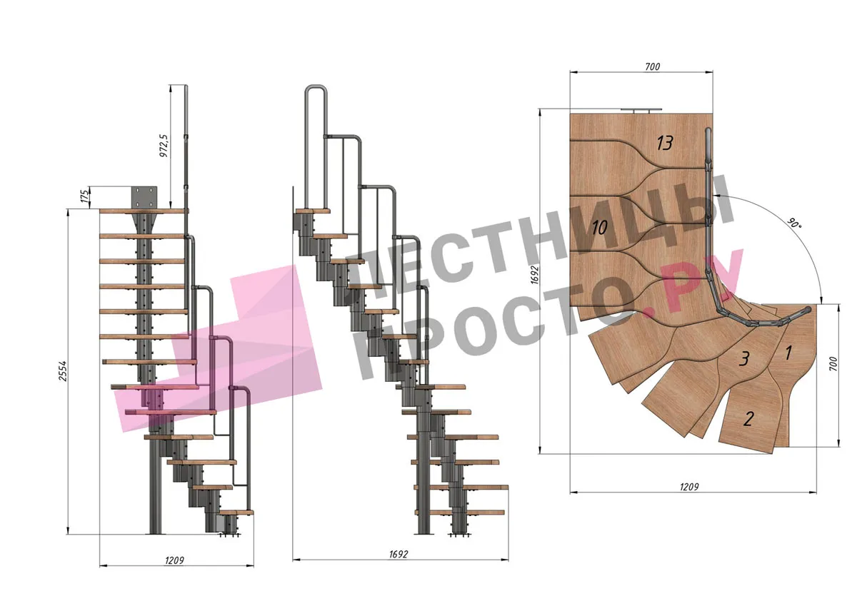 - Регулируемый по высоте в пределах 180-240 мм модуль. Большой диаметр и толщина металла деталей обеспечивают жесткость и прочность конструкции. Регулировка каждого модуля по высоте позволяет легко приспособить лестницу под ваше помещение.