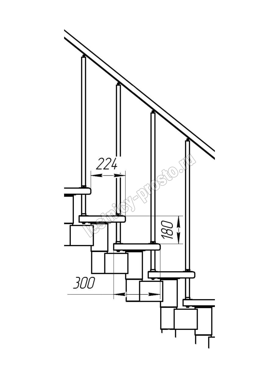 Модульная лестница Фаворит 180 2160-2280, Белый, Бук, Нержавеющая сталь