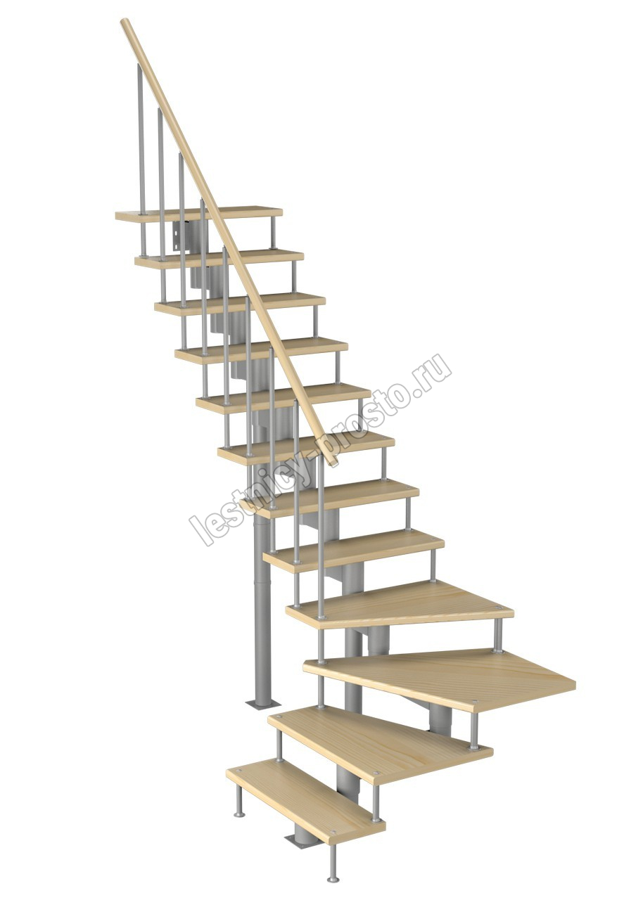 Модульная лестница Фаворит 180 2160-2280, Серый, Сосна, Нержавеющая сталь