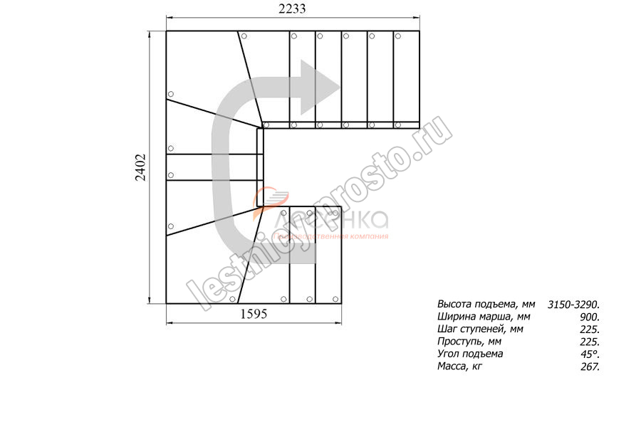 Модульная лестница Спринт 225 3150-3290, Белый, Сосна, Крашеная