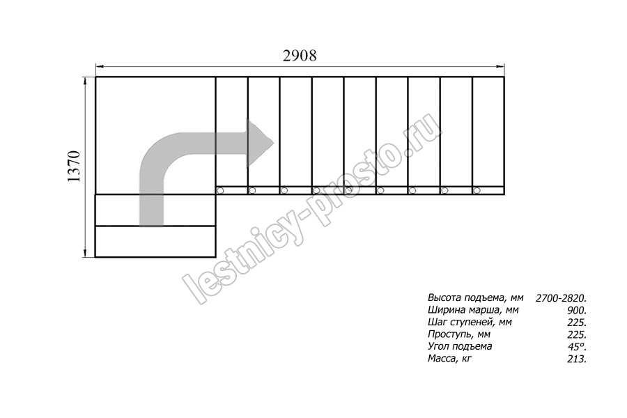 Модульная лестница Статус 225 2700-2820, Серый, Лиственница, Крашеная