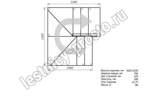 Высота лестницы 2025 - 2250 мм