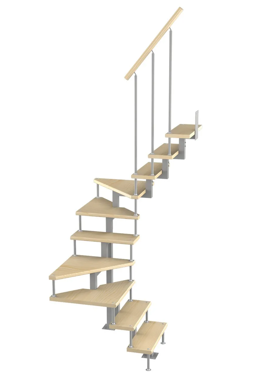 Модульная малогабаритная лестница Эксклюзив 2250-2475, Серый, Сосна, Крашеная, Без Ступений