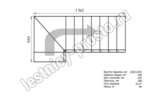 Высота лестницы 2250 - 2475 мм