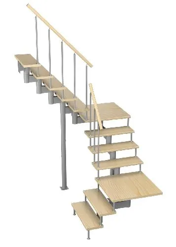 Металлокаркас покрыт порошковой краской. В зависимости от дизайна лестницы, металлокаркас может оставаться видимым или полностью обшиваться. Лестница на базе каркаса может собираться как в левозаходном, так и в правозаходном вариантах. Монтаж рекомендуется осуществлять силами двух человек на объекте, по указаниям, приведенным в паспорте.