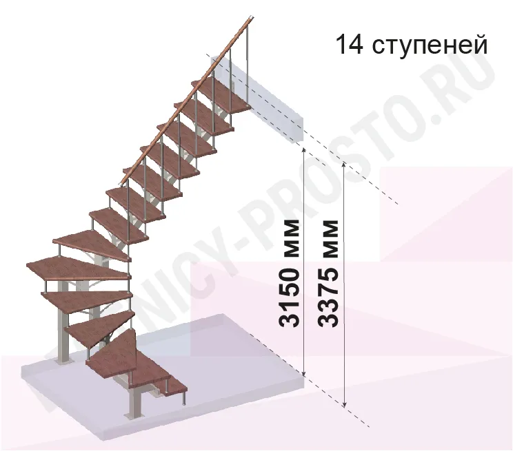 Лестница PROSTO MONO П-образная, h315 см, ступени хвоя |