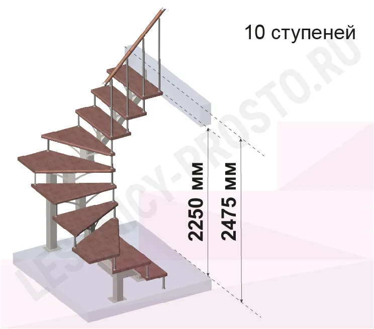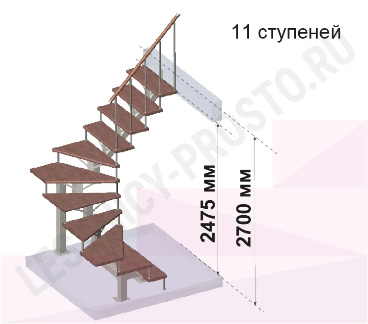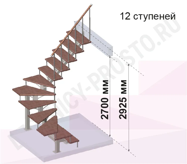 Лестница PROSTO MONO П-образная, h270 см, ступени хвоя |