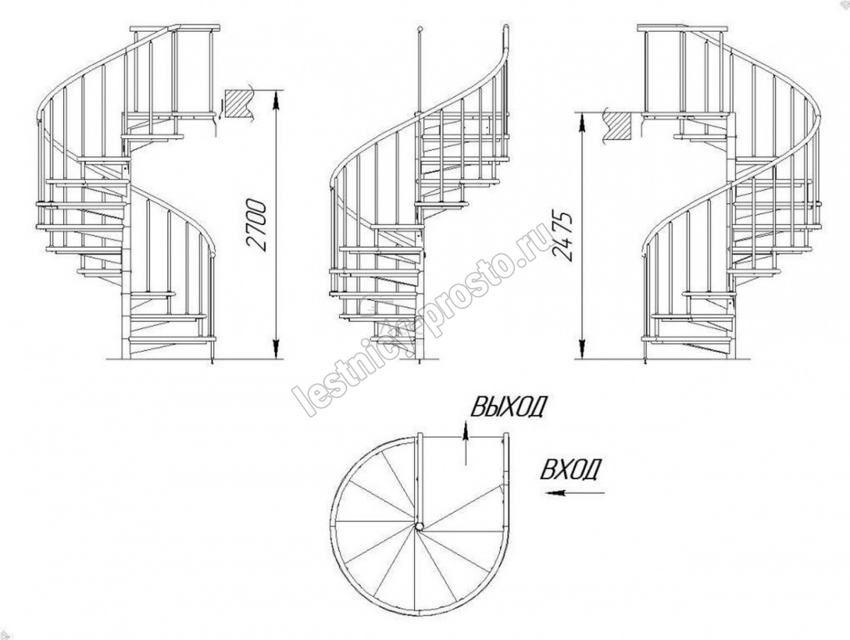 Винтовая лестница ЛЕС-1,8 высота 2700-2925, Черный, Лиственница