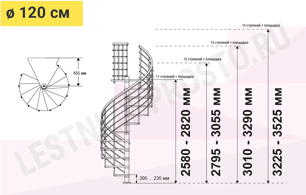 | Винтовая лестница Montreal STYLE чёрная d120 см, h258-282 см |