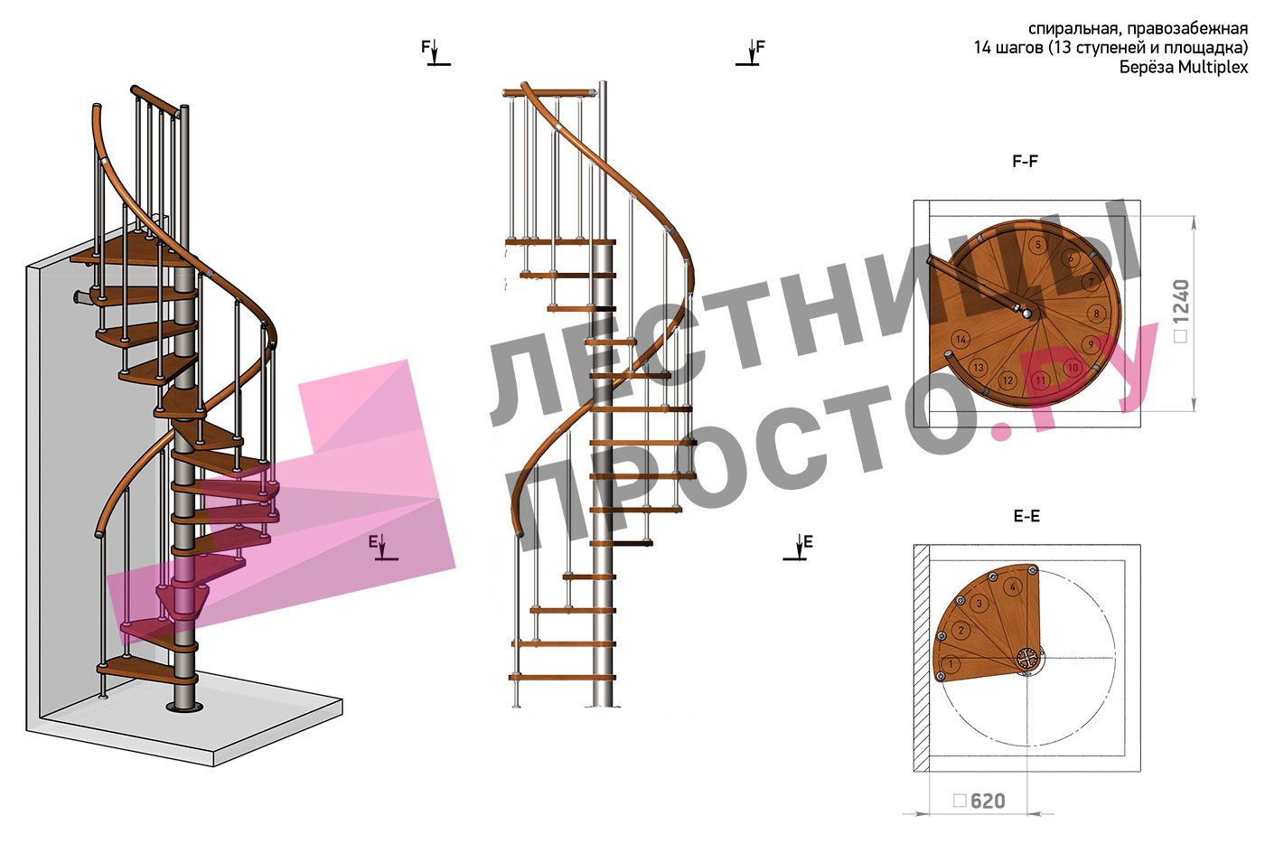 Винтовая лестница Prosto Spiral White D120см, h296.9-338.1 см