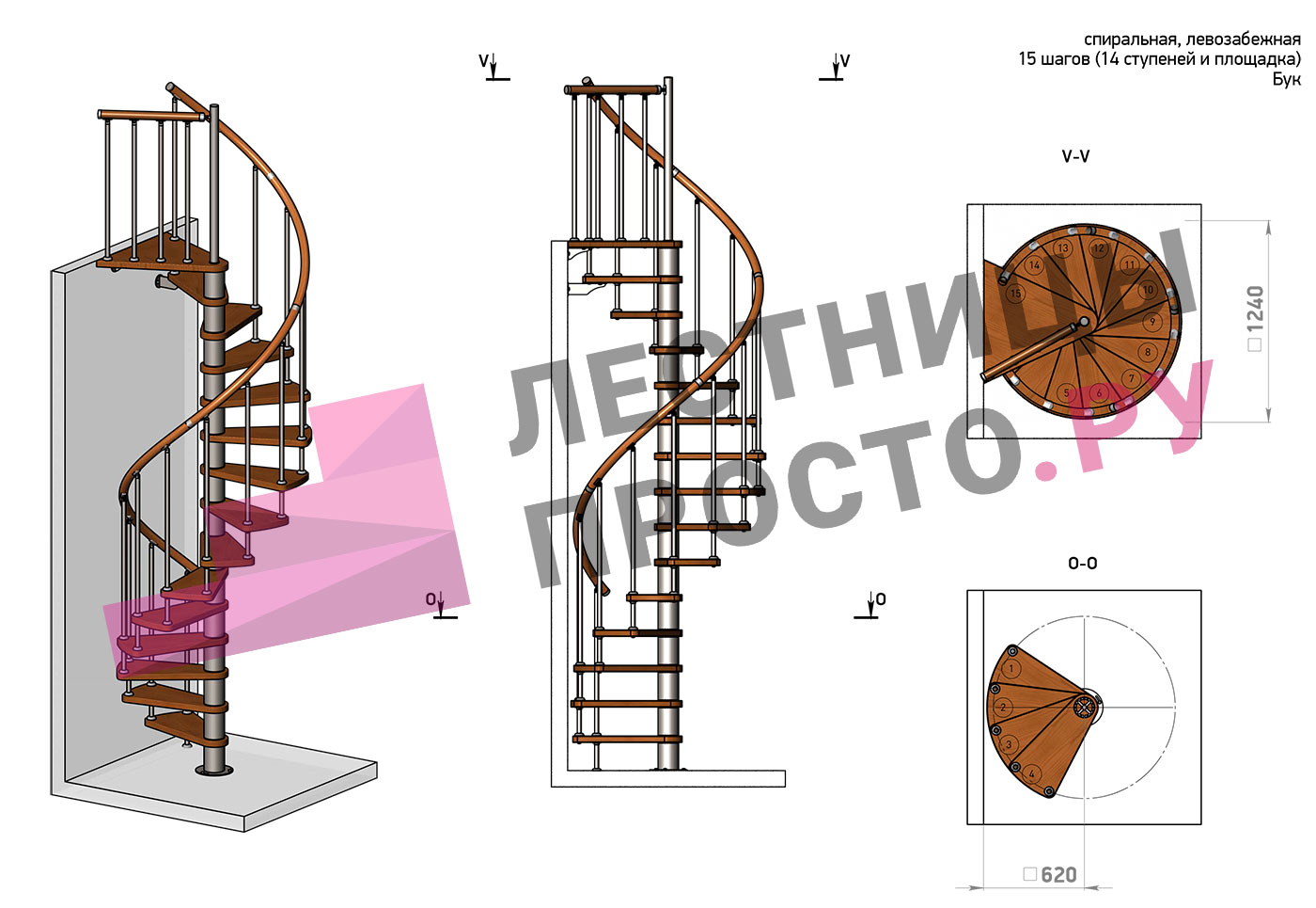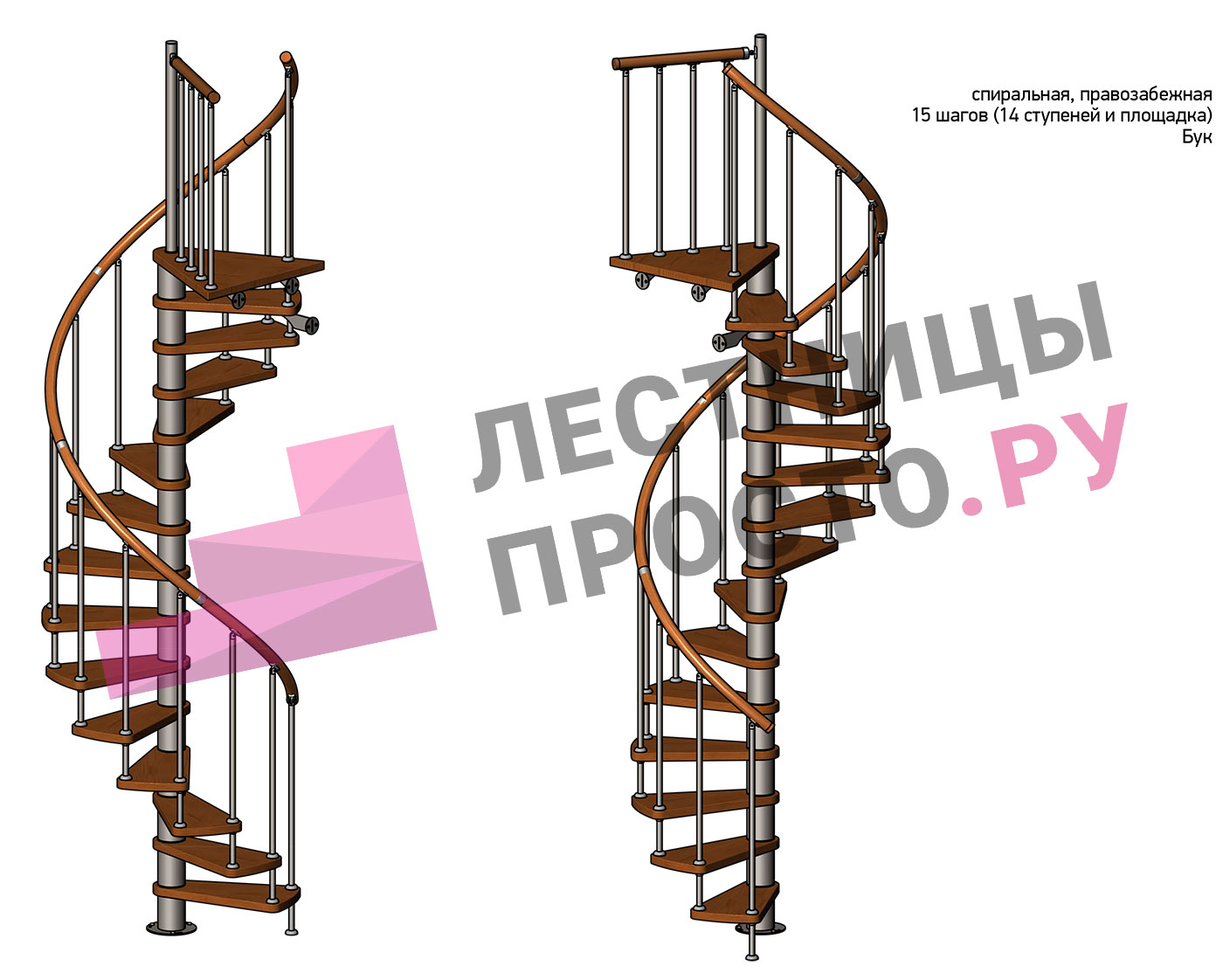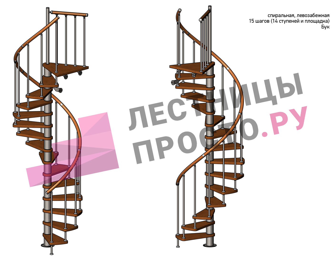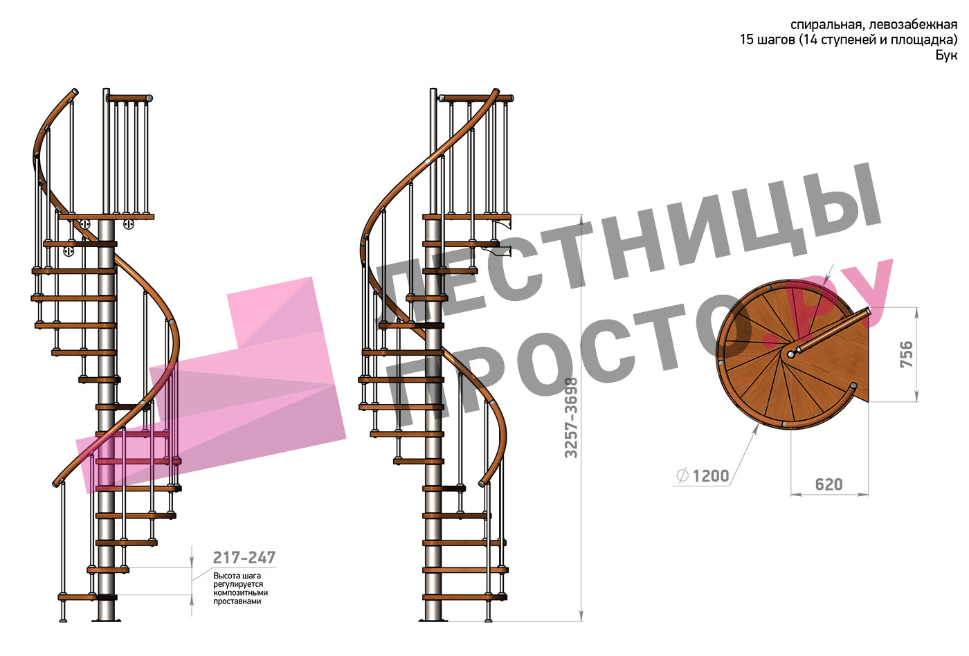 Винтовая лестница Prosto Spiral White D120см, h325.7-369.8 см, бук