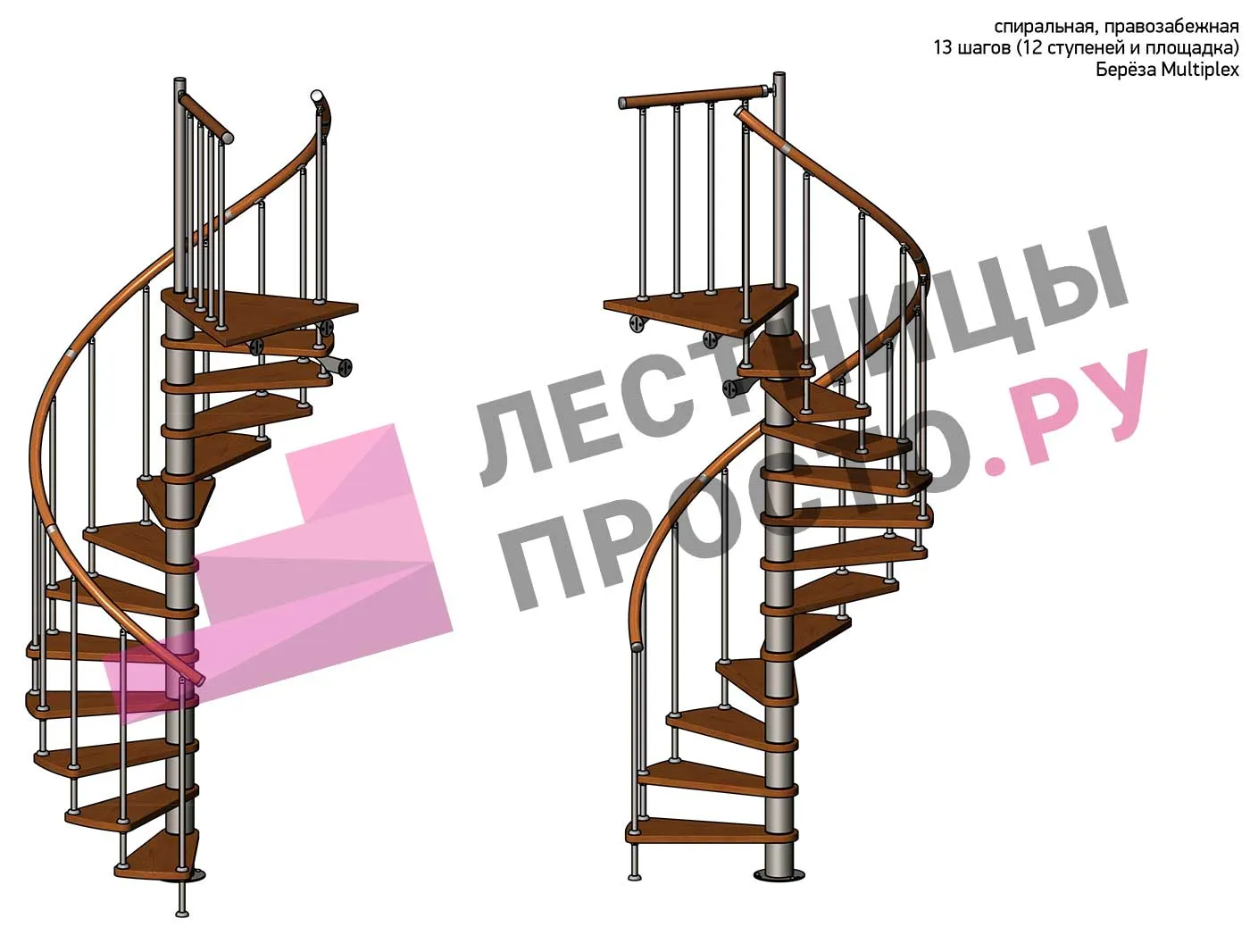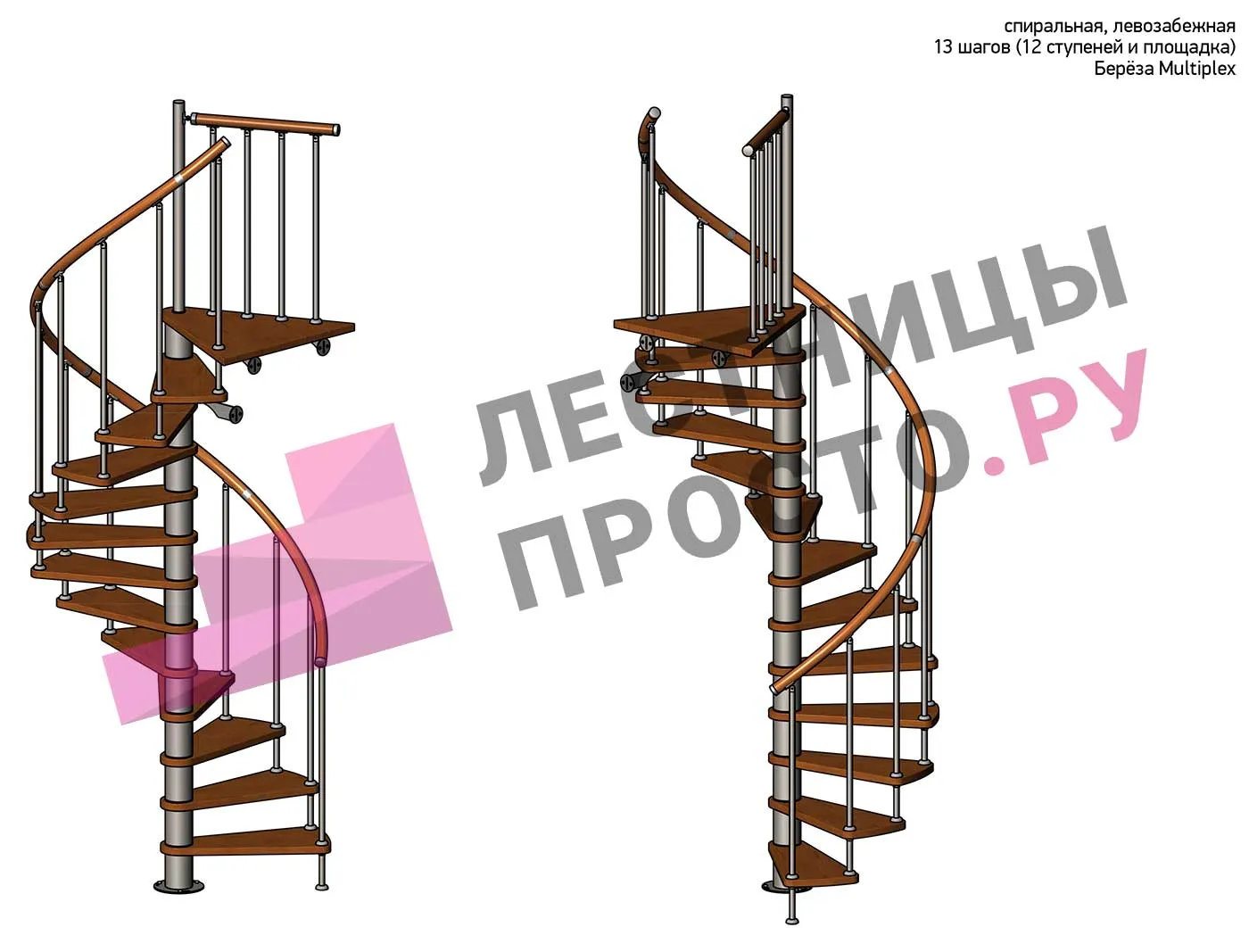 Винтовая лестница Prosto Spiral White D140см, h275.7-313.9 см