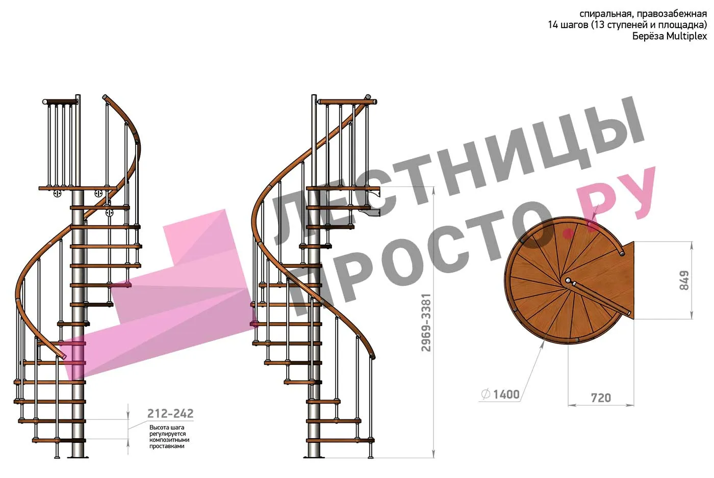 Винтовая лестница Prosto Spiral White D140см, h318.2-362.3 см