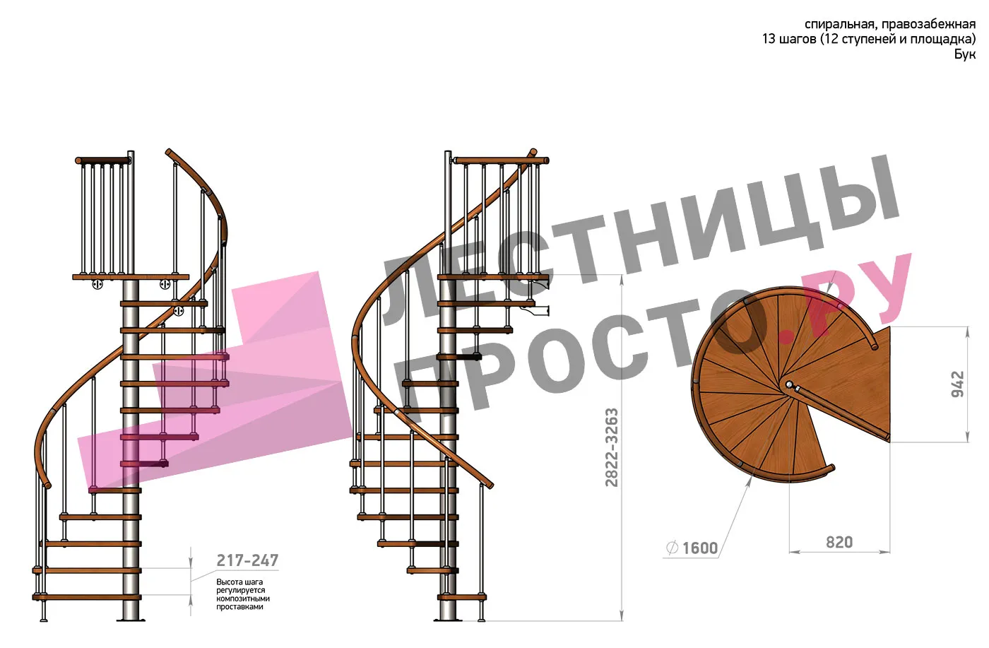 Винтовая лестница Prosto Spiral White D160см, h282.2-326,3 см, бук