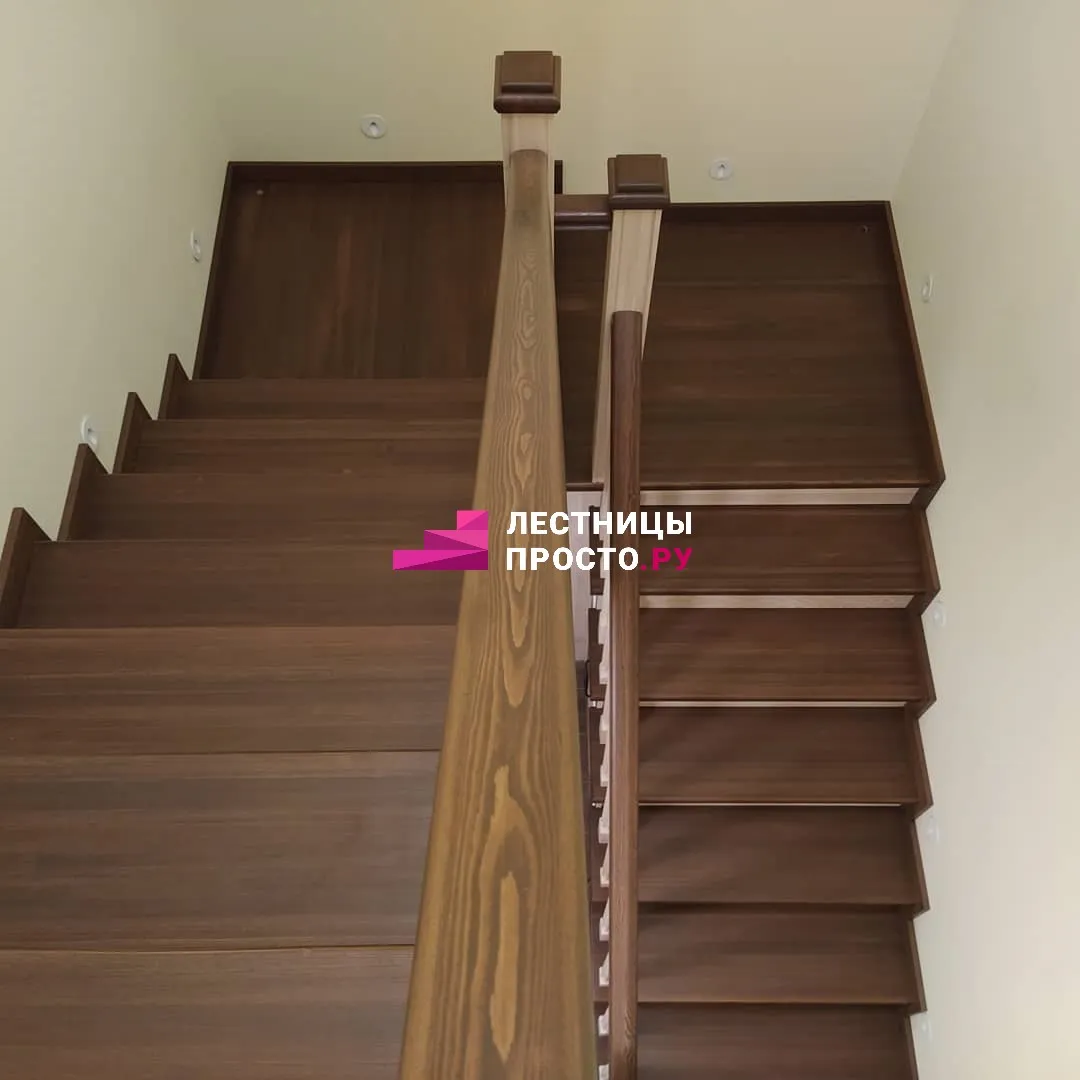 Для обшивки ступеней использована срощенная лиственница категории АВ.