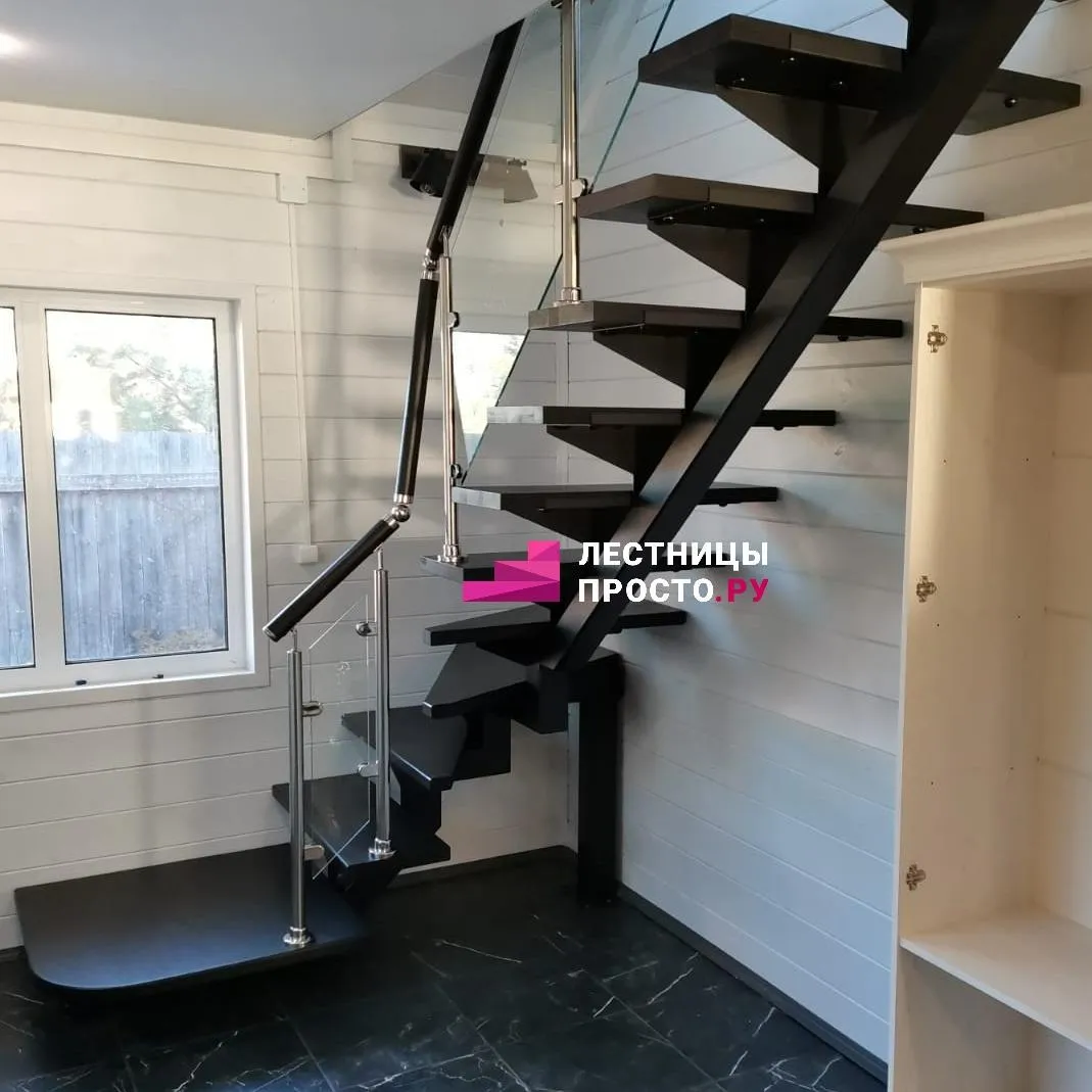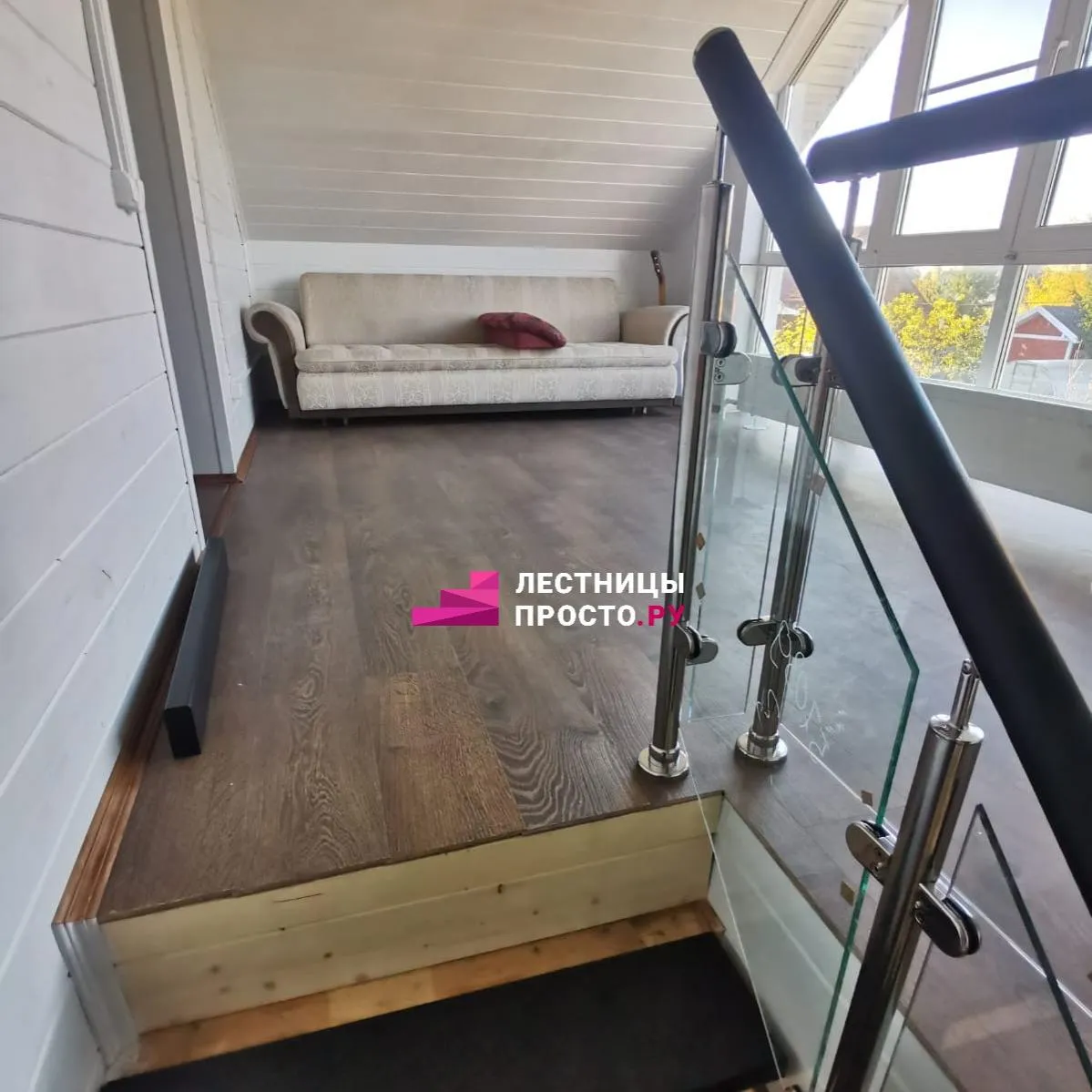 Лестница по индивидуальному проекту со стеклянным ограждением LP-2935